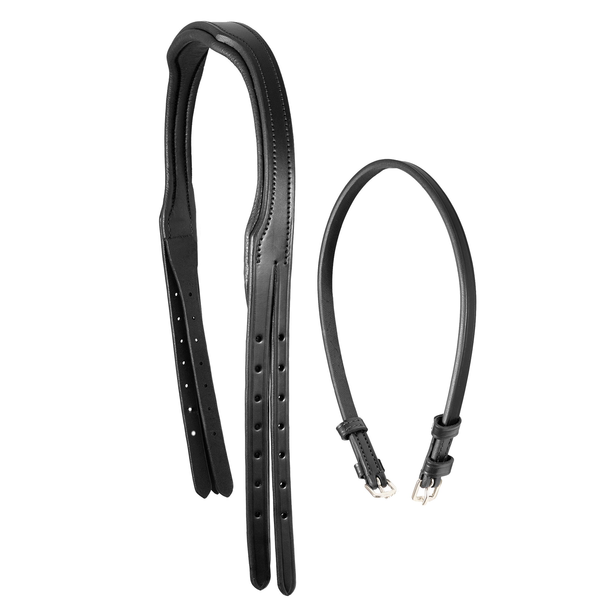 This crownpiece is designed to be used as a snaffle bridle with three straps on either side - one for cheekpieces, one for the noseband and one for the throatlatch. . With cheekpiece attachments only 1/2" wide, this headpiece creates an elegant refined picture perfect for finer horses and for use in the show ring.