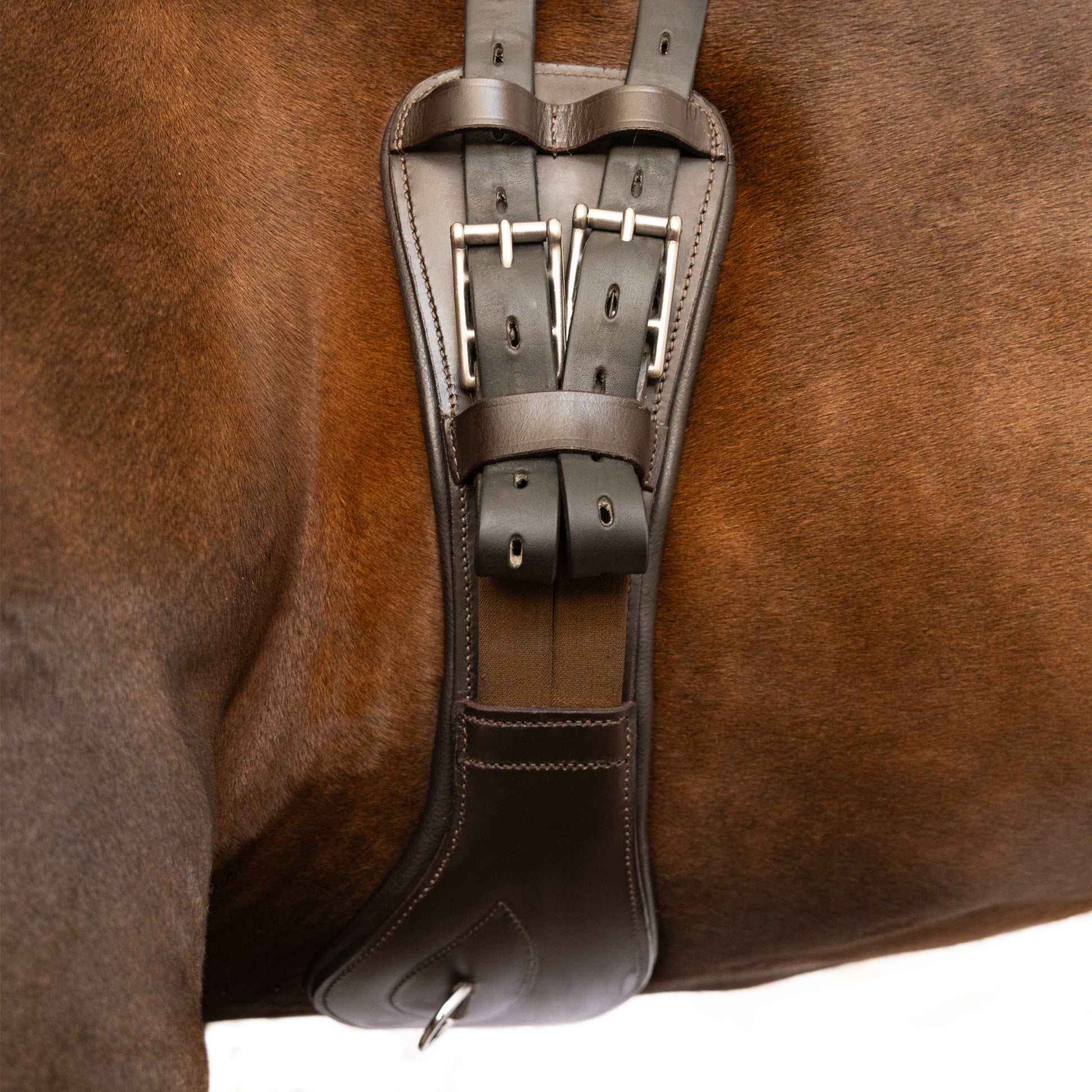 The crescent girth shape keeps the girth from being pushed forward and gives room for the elbows, which helps to eliminate galling.