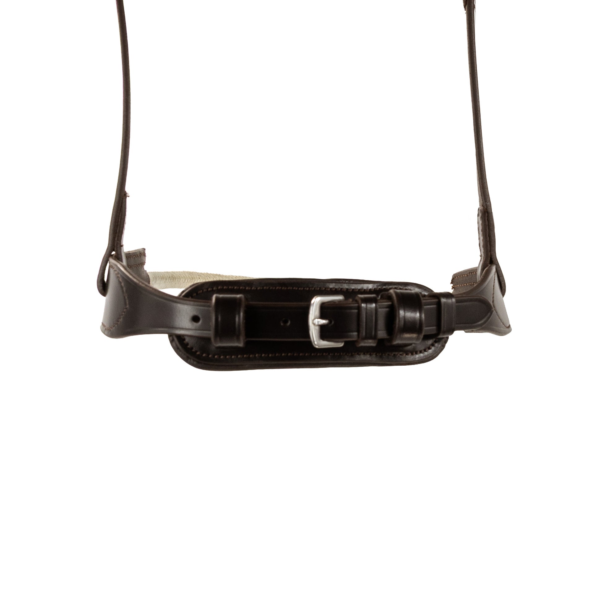 All of our nosebands feature a double-buckle design, fastening on both sides of the crownpiece. This ensures a precise fit while reducing the amount of leather over the poll, which in turn helps minimize pressure and improve comfort.
